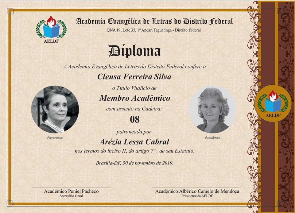 Posso contar com um grandioso privilégio que me ocorreu em 2018. Nessa referida data fui convidada pela nossa digníssima pastora Raquel assistir a uma reunião da Academia Evangélica de Letras do Distrito Federal (AELDF). Sem hesitar eu fui… De início me identifiquei… Fiquei para sempre… Até a segunda ordem do nosso Criador.